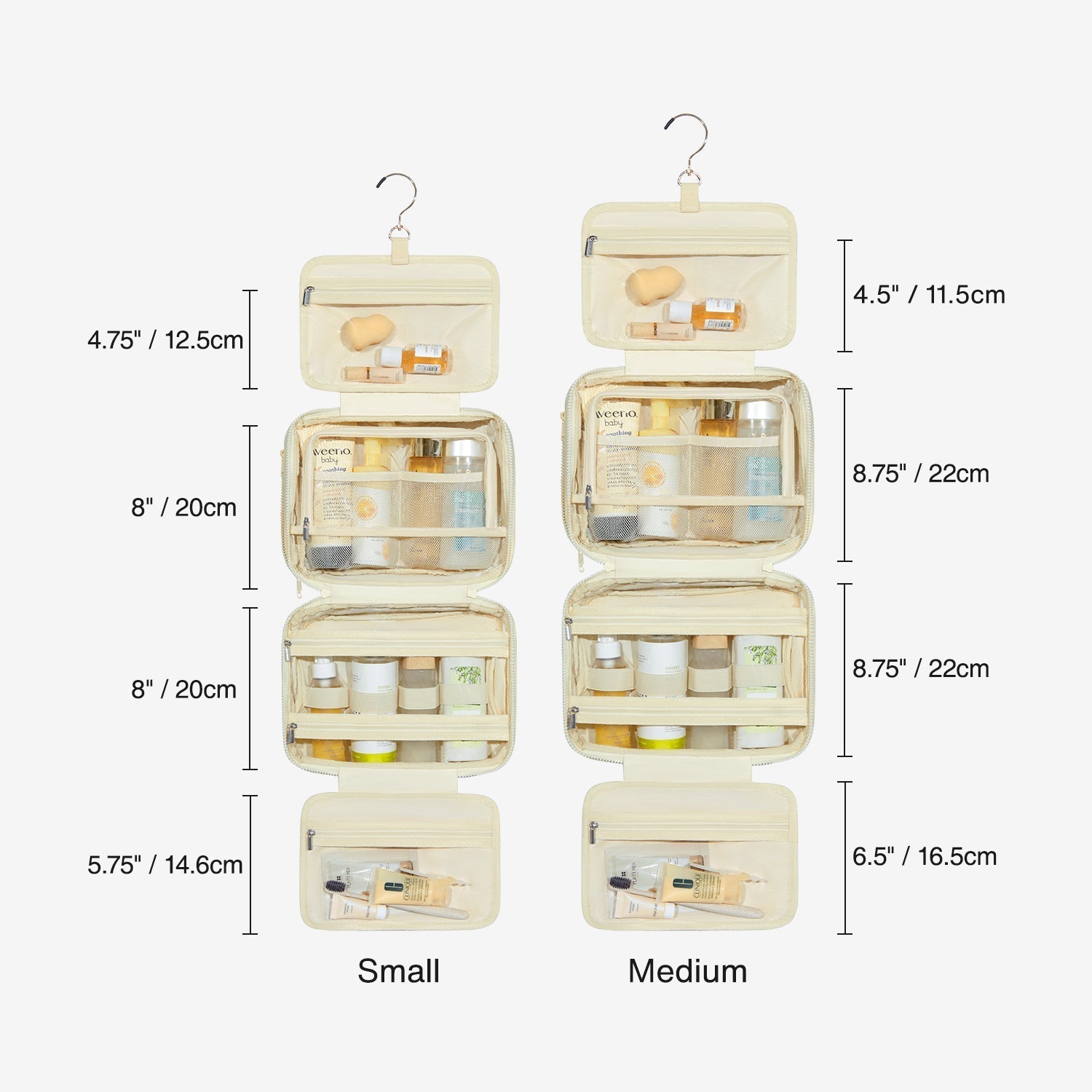 Reise organisiert und stilvoll mit diesem hellrosa hängenden Kulturbeutel im gepolsterten Design. Dank der durchdachten Aufteilung mit transparenten Reißverschlussfächern bleiben Make-up, Pflegeprodukte und Toilettenartikel stets ordentlich getrennt und übersichtlich.