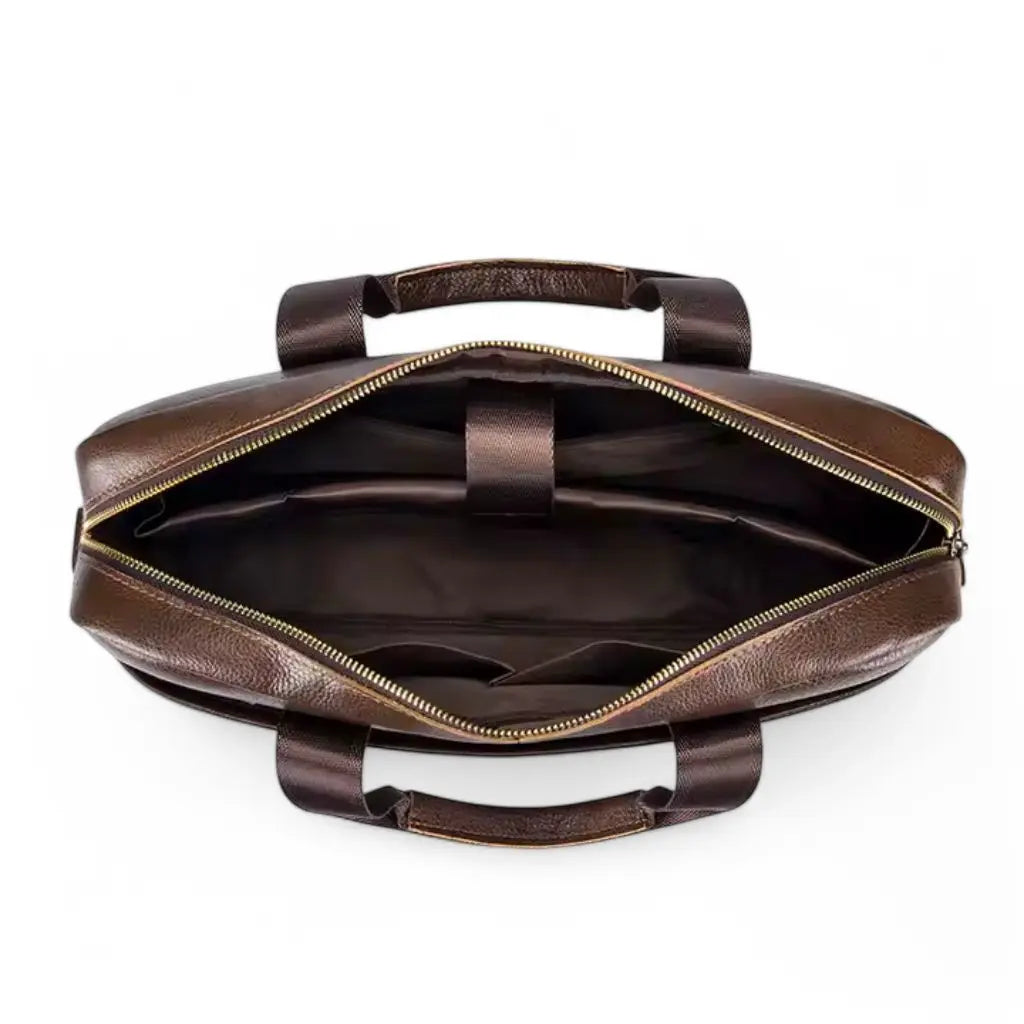 Die Laptoptasche Leder Herren 16 Zoll vereint klassisches Design und robusten Schutz für deinen Laptop im Alltag und Beruf. Gefertigt aus echtem Leder, bietet diese braune Laptoptasche nicht nur edle Optik, sondern auch Langlebigkeit. Das speziell gepolsterte 16 Zoll Laptopfach schützt zuverlässig vor Stößen und Kratzern – ideal für Büro, Pendler oder Geschäftsreisen.