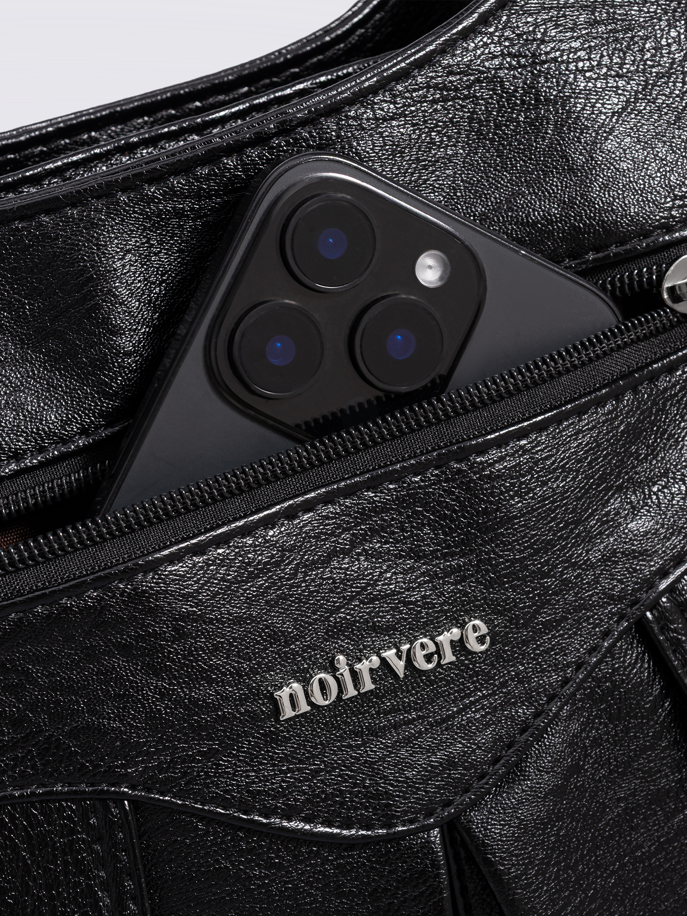 Die schwarze Liorra Umhängetasche ist die perfekte Kombination aus Funktionalität und Mode. Gefertigt aus hochwertigem veganem Leder strahlt sie Luxus aus und ist zugleich langlebig und tierfreundlich. Das durchdachte Design mit mehreren Fächern sorgt dafür, dass deine Essentials immer organisiert und griffbereit bleiben.