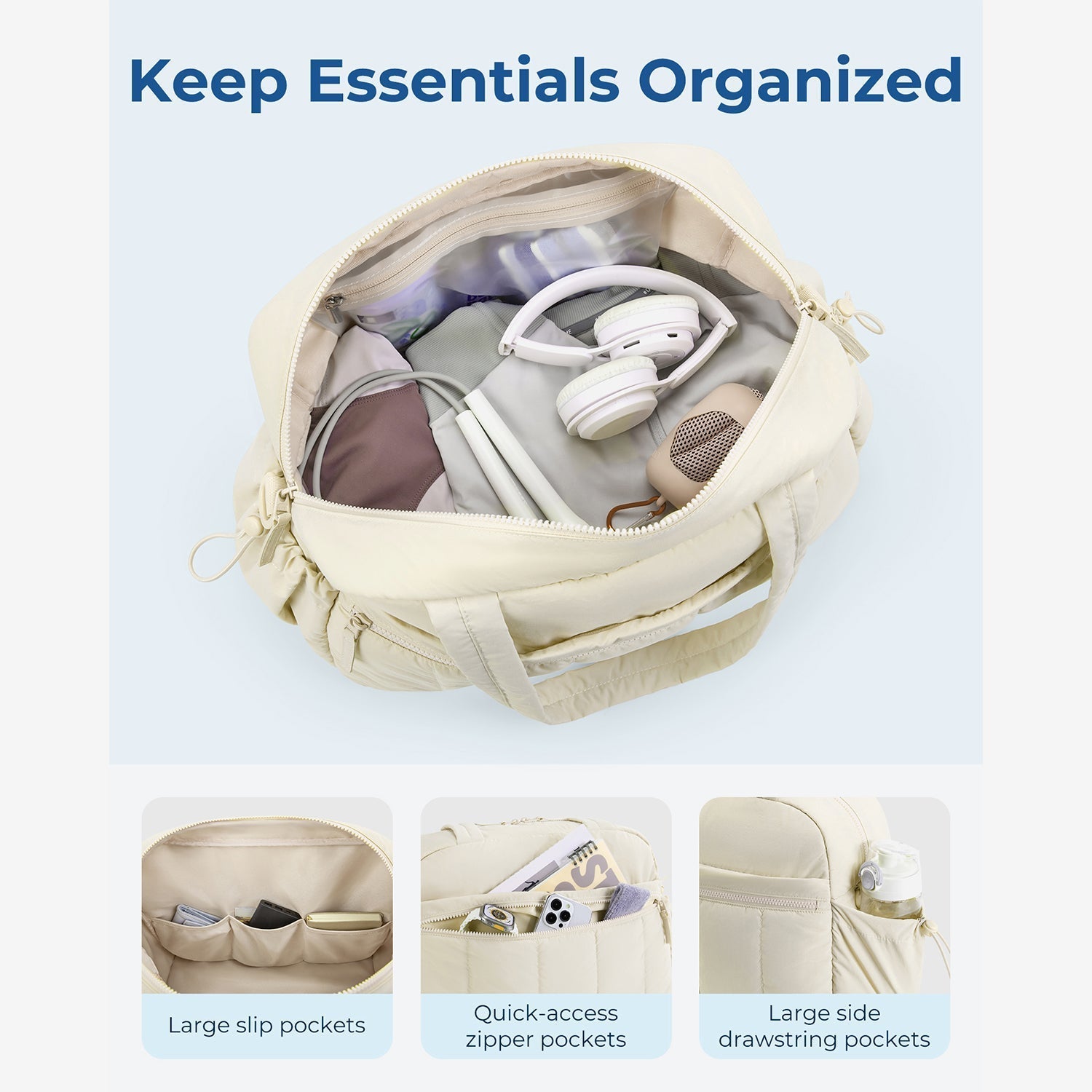Reisetasche für Handgepäck – Leicht & Wasserabweisend mit Trolley-Gurt & PVC-Fach