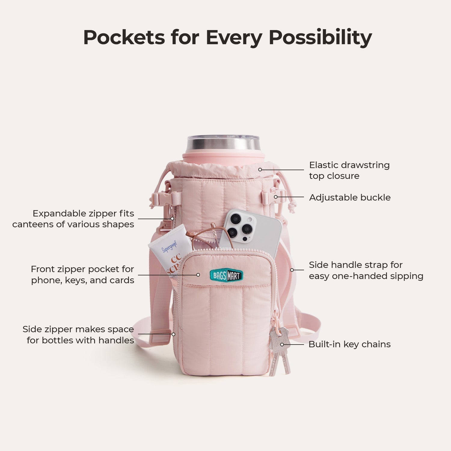 Mit dieser Wasserflaschen Tasche bleibst du unterwegs immer organisiert und hast deine Essentials sofort zur Hand.